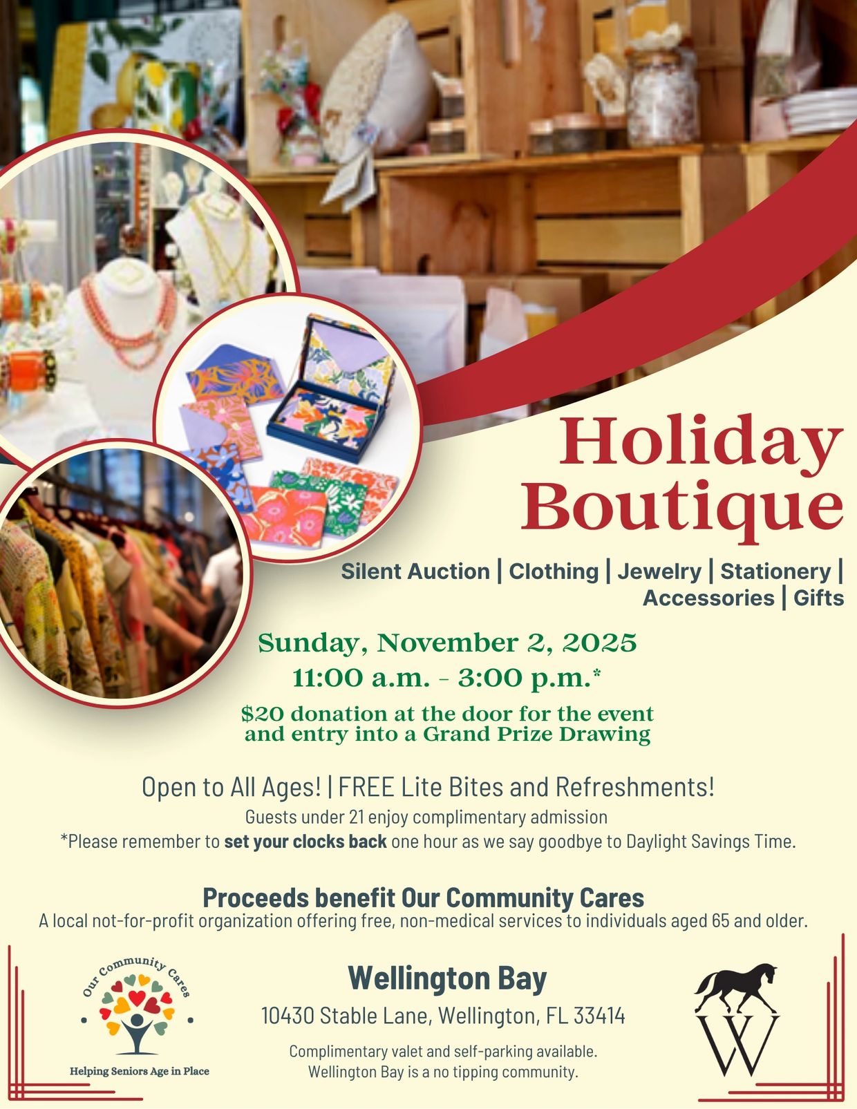 Our Community Cares serves the 65 and older population of Wellington and Royal Palm Beach for Free. Please make a donation so we may continue to serve helping seniors age in place.